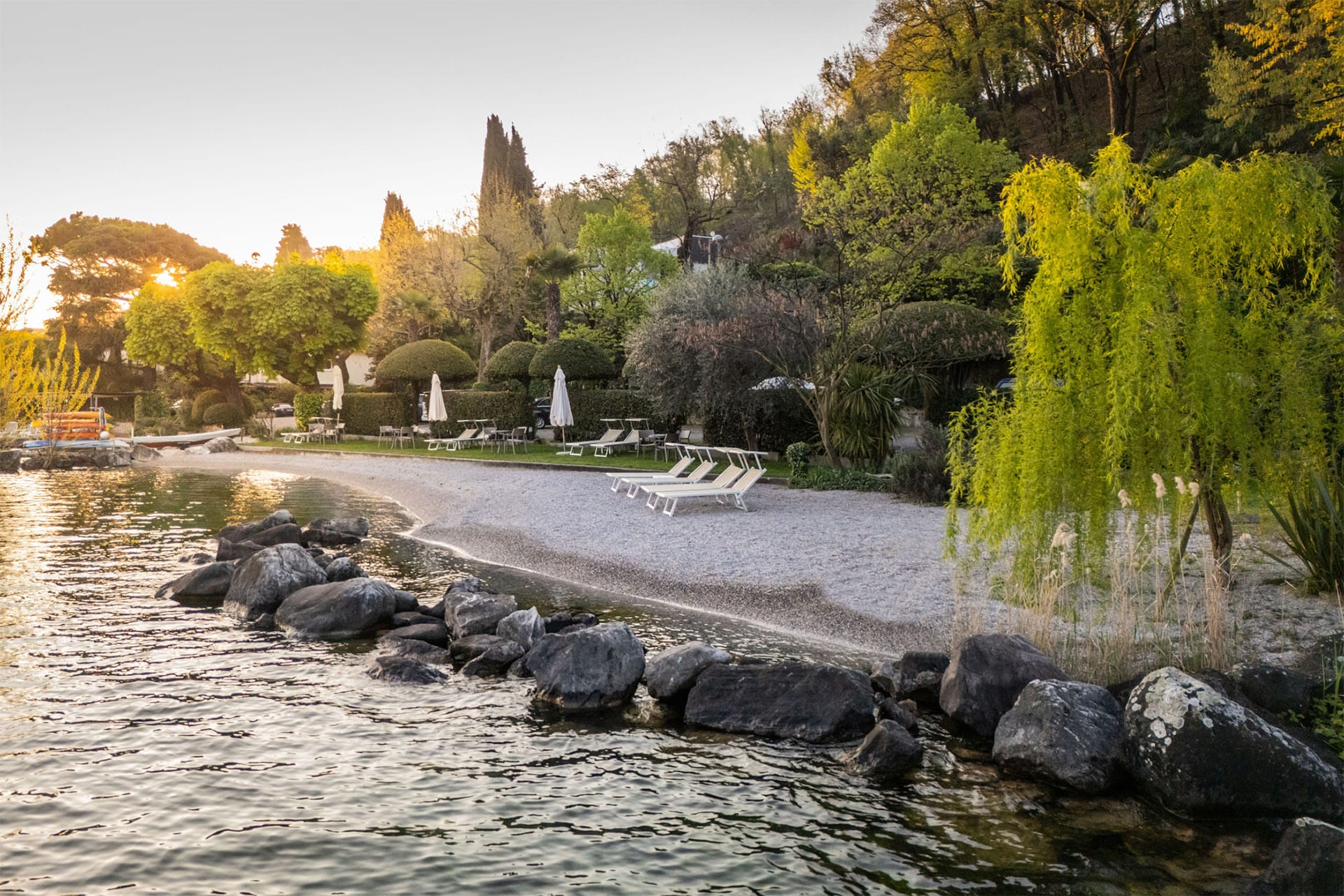 Au Garden Zorzi, vous attend une vaste plage privée exclusive, réservée uniquement à nos hôtes – l’endroit idéal pour laisser derrière vous le stress et le quotidien.